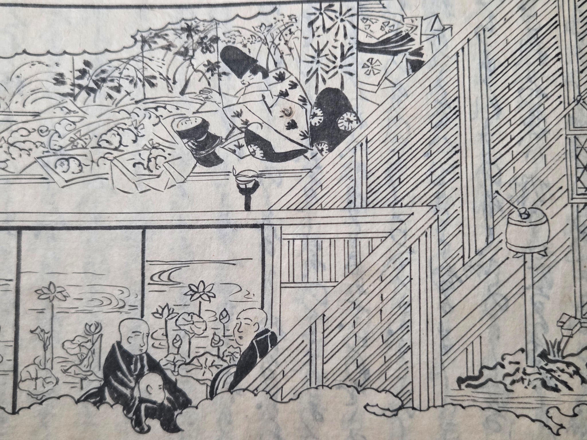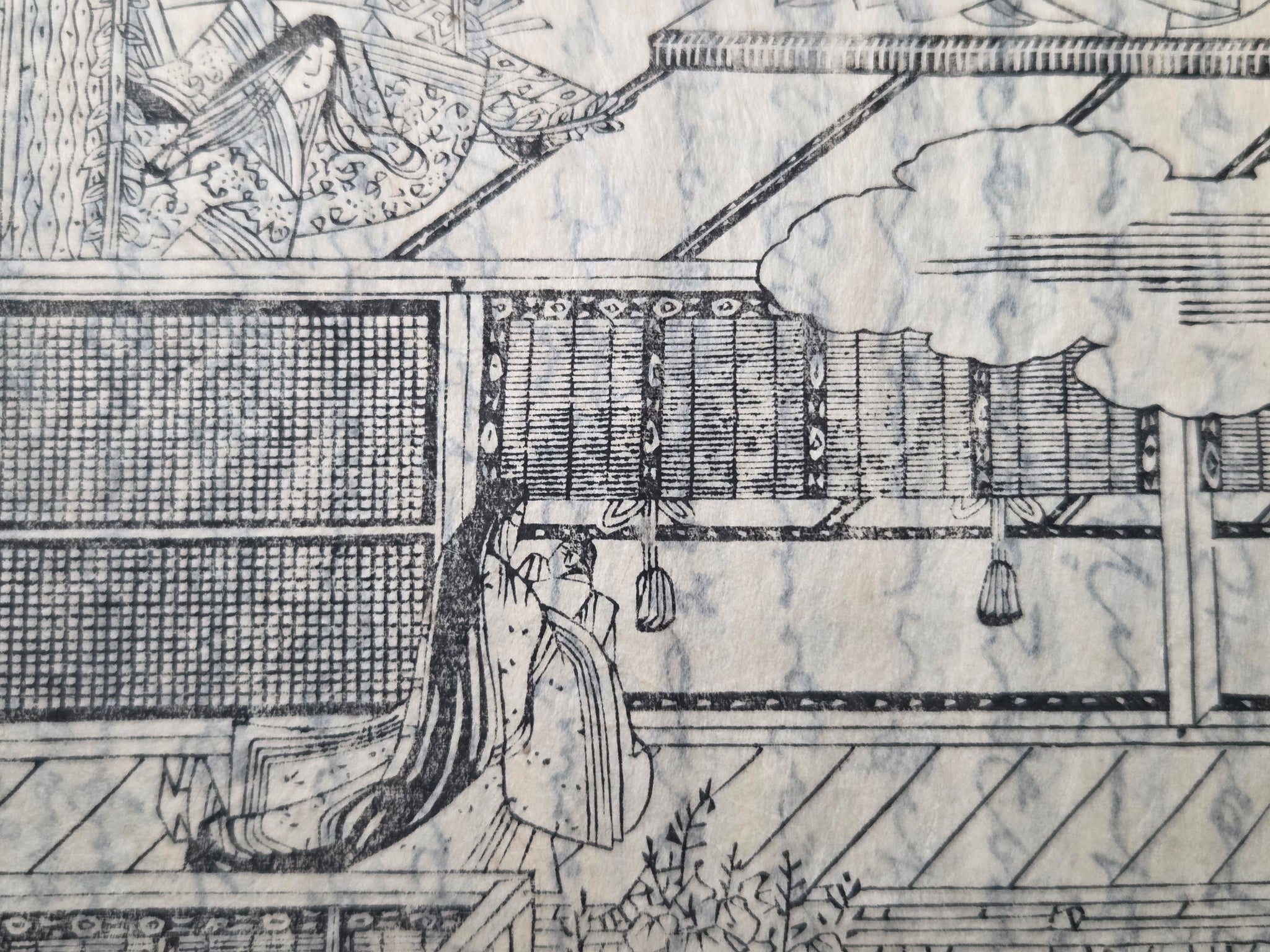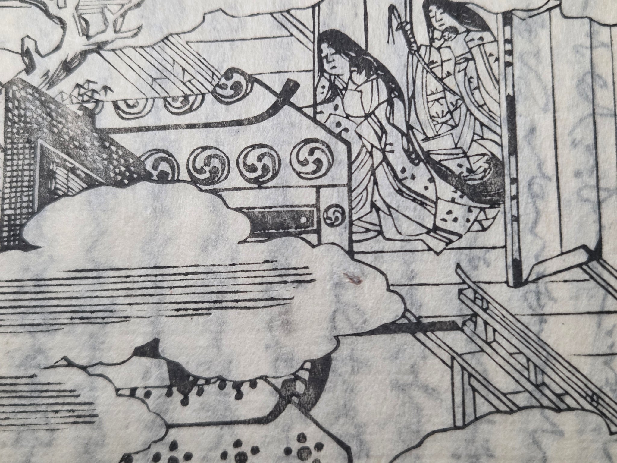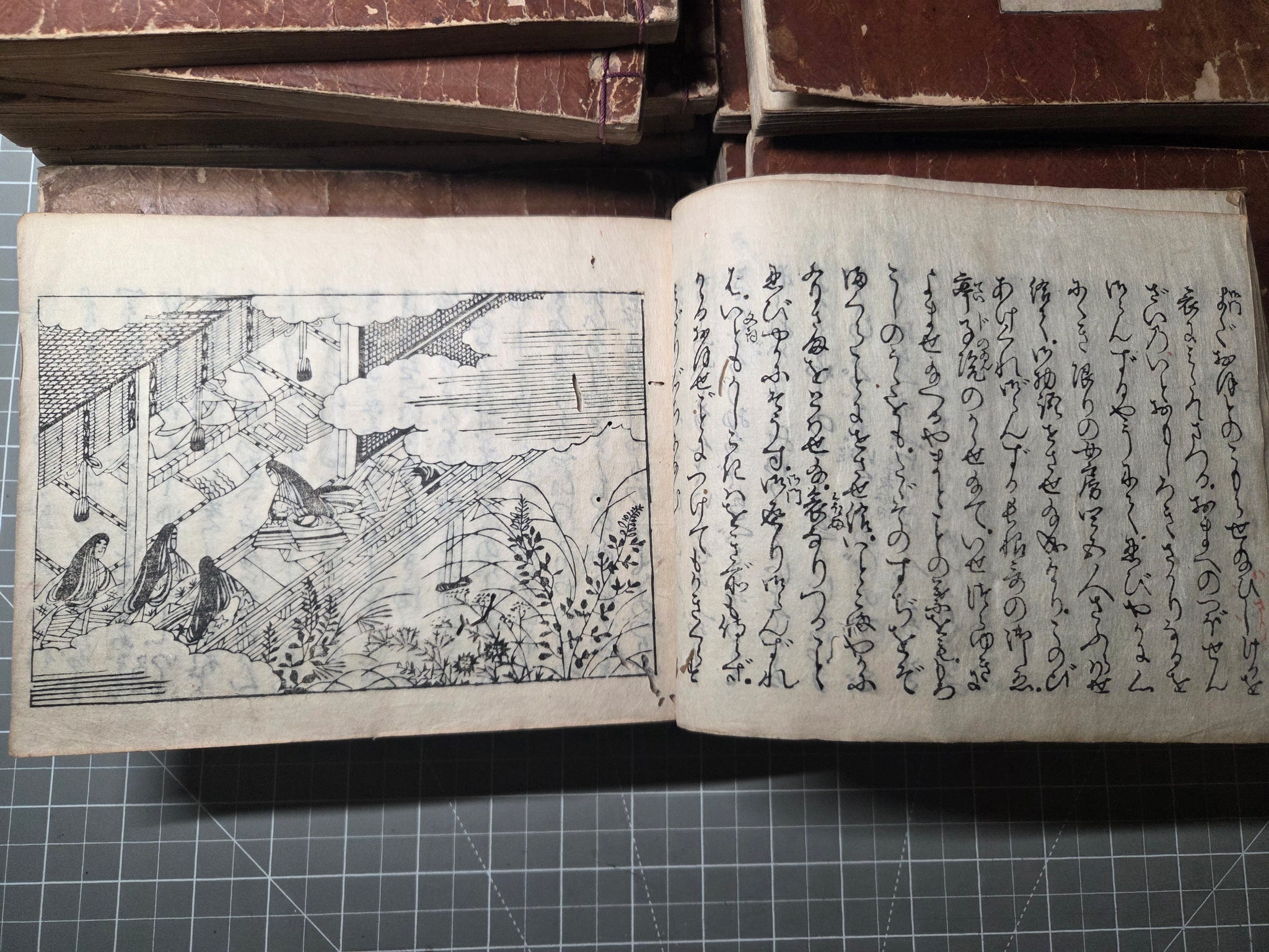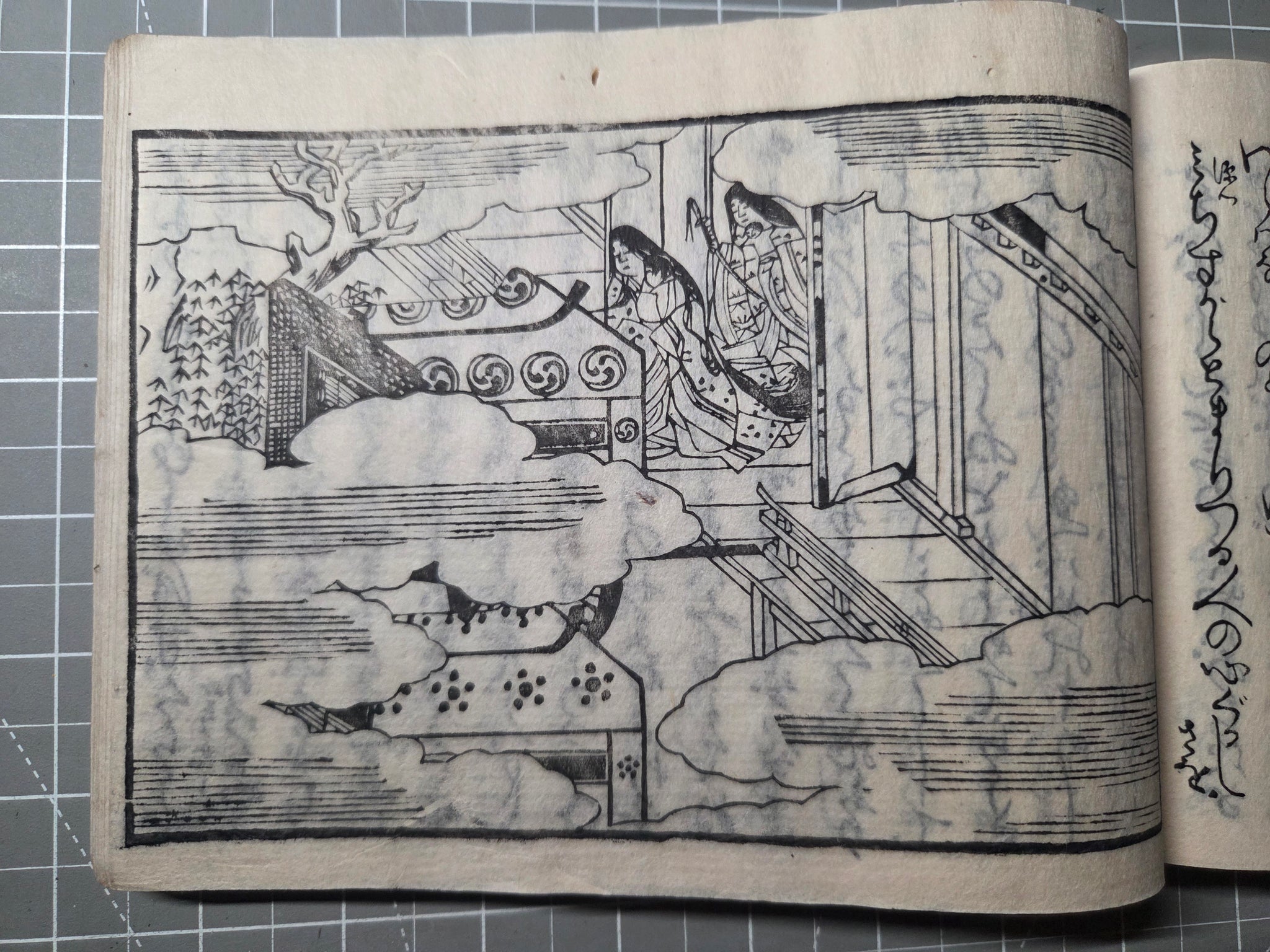 Since the Heian Period, numerous copies of the Tale of Genji have existed in the form of manuscripts, and those who could not afford the manuscripts became familiarized with the text through the summarized editions, usually produced with commentaries. The Eiri Genji, first printed in Keian 3 (1650), was known as the was the first edition to be provided that included illustrations in addition to the text itself. This is the Manji 3 (1660) edition, being the third known variant, and referred to as the yokohon edition because of its landscape format.